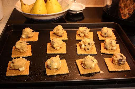 Coming off our smores high, I was craving more. I found these smores cookies on Pinterest. It's basically chocolate chip cookie dough with mini marshmallows placed on top of a graham cracker square.